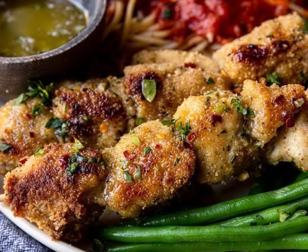 Chicken skewers with light sauce