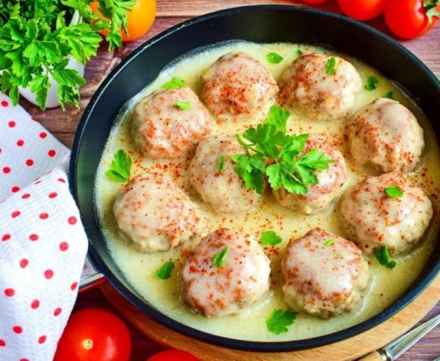 Juicy chicken meatballs in creamy sauce